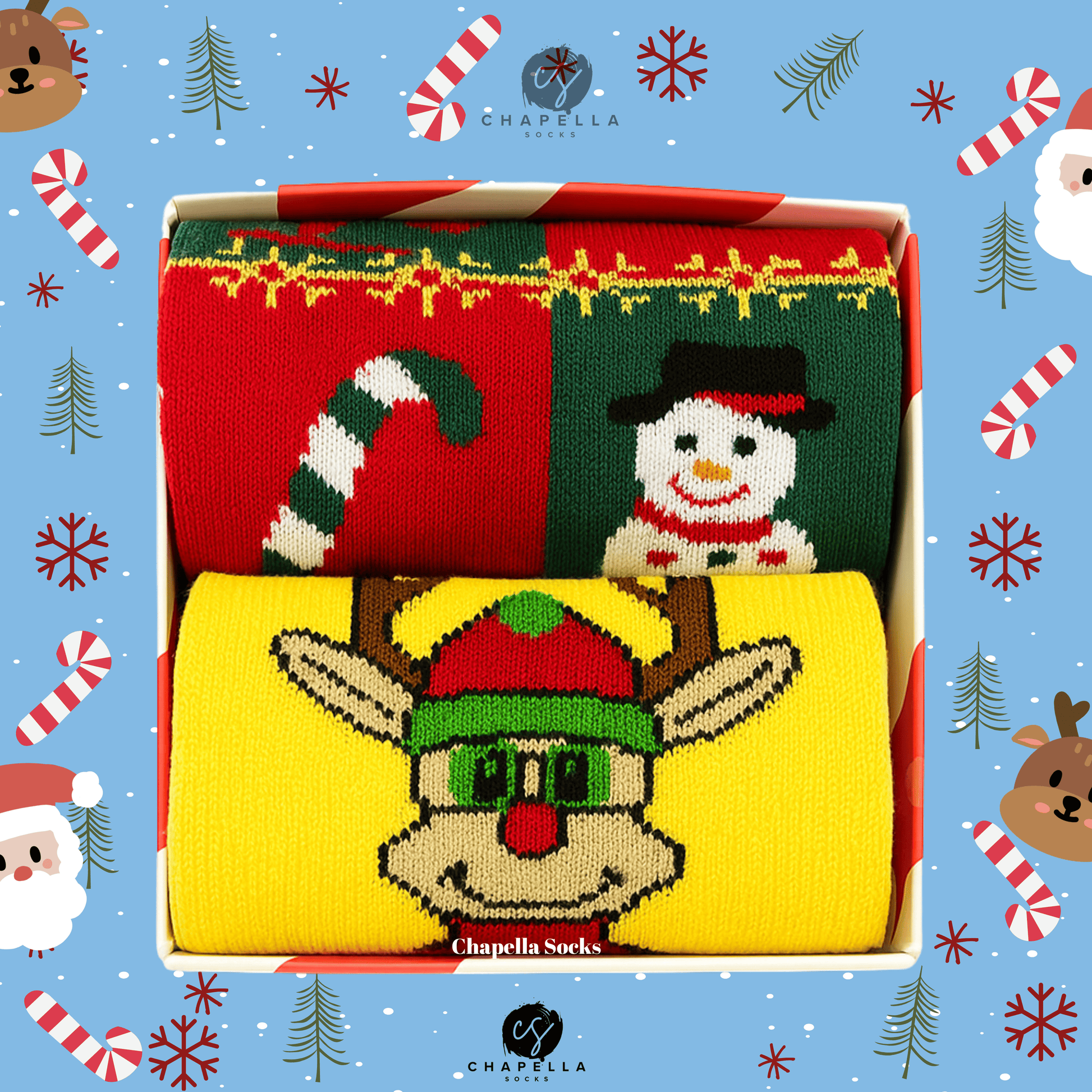 Chapella Co.'s specially designed reindeer patterned Christmas socks keep you warm and reflect your style.
